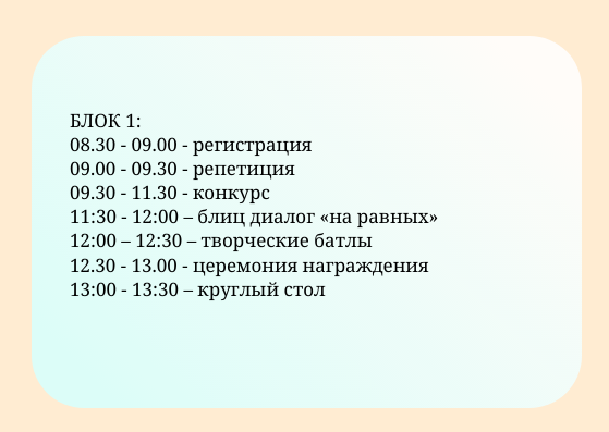 Участие в «блиц диалогах на равных», «творческих батлах» и «круглых столах» по желанию Руководителей.