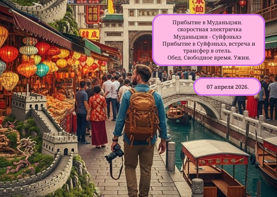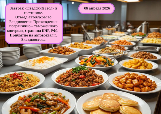 Билеты на Международный автобус Владивосток/Уссурийск – Суйфэньхэ; – Владивосток/Уссурийск, КНР; Билеты на ж/д переезд Суйфэньхэ -Муданьцзян — Циньхуандао — Муданьцзян — Суйфэньхэ; Страховка на все дни пребывания в КНР (лечение зубов не входит в мед. страховку). Трансфер во время фестивально-конкурсной программы. Проживание в гостинице 3*: Бэйдайхэ, уезд Уцяо, Суйфэньхэ, национальная туристическая зона 4A «Мир акробатики Уцяо». Суйфэньхэ. Питание по программе. Фестивально конкурсная программа (дипломы, медали, памятные подарки). Экскурсионная программа (входные билеты на все достопримечательности, указанные в программе).