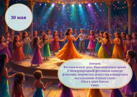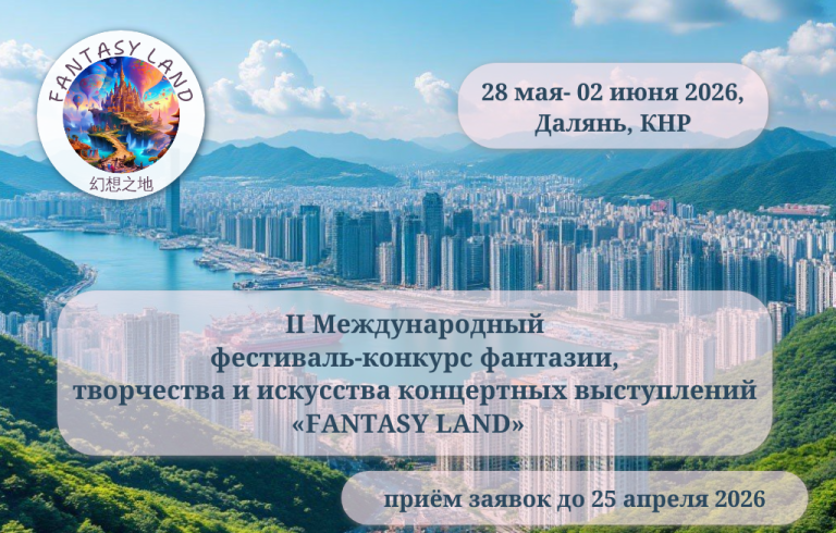 Выступать на концертной сцене в самом интересном по культурным событиям городе Китая – это значит ощутить незабываемые эмоции от успеха! Стать частью мероприятий, завершающих Год культуры Китая и России в провинции Ляонин, на площадке Государственного телевидения — это возможность привезти сразу два Международных диплома: Лауреатский диплом II Международного фестиваля-конкурса фантазии, творчества и искусства концертных выступлений «FANTASY LAND» и Золотой Диплом Детского образовательного канала Радиотелевидения провинции Ляонин. Далянь наполнит вас фантазией, искусством, и желанием продолжать свой творческий путь. Город Далянь создан для талантливых людей!