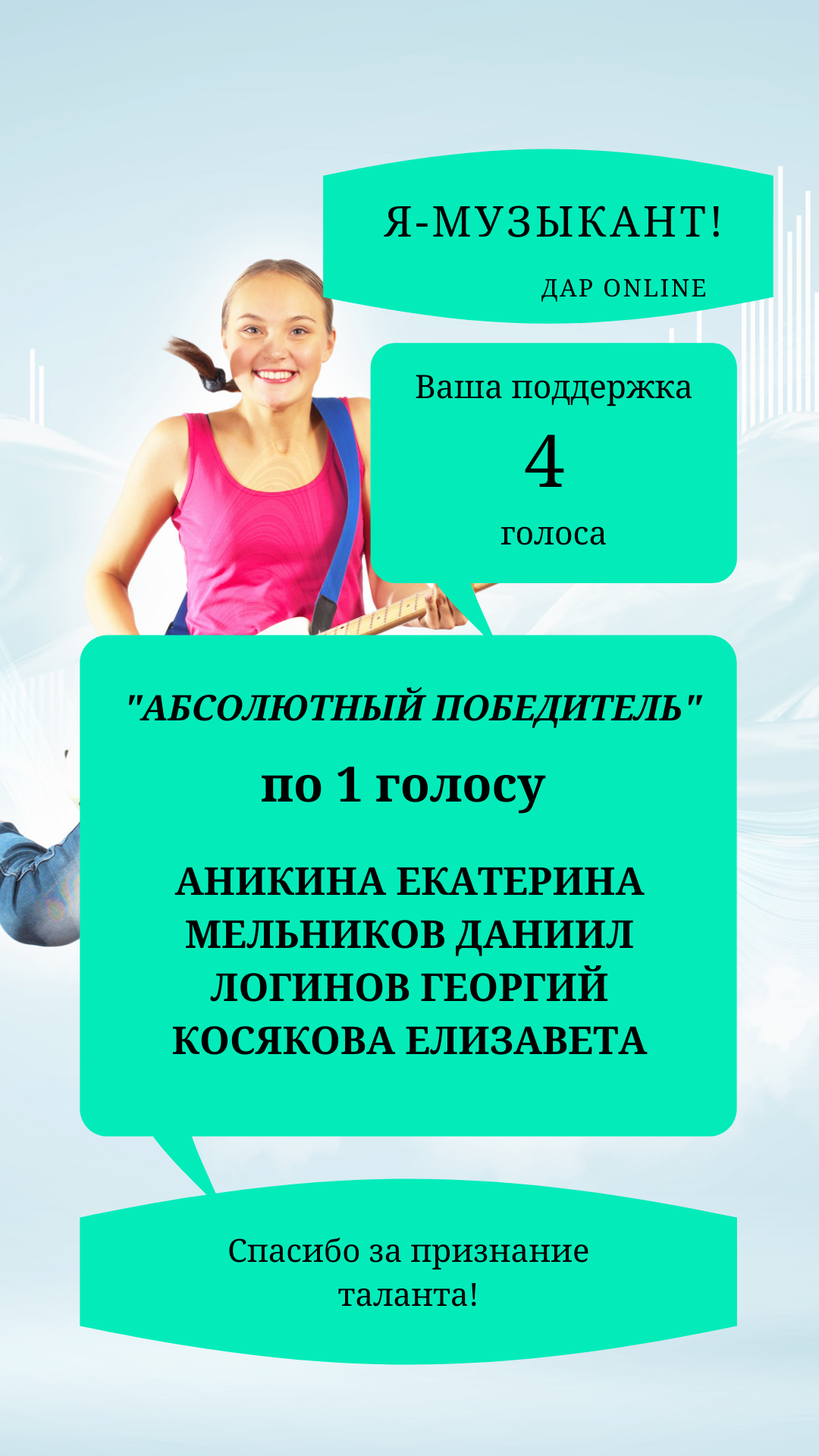 Номинация «Я – МУЗЫКАНТ» представлена ГАЧЕГОВОЙ АННОЙ из Ростовской области.