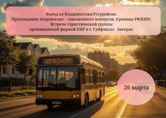 Трансфер: Владивосток/Уссурийск – Харбин и обратно;