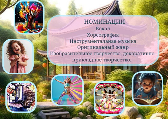 Вокал: (соло, дуэт, вокальная группа, вокальный коллектив, хор): детская песня, эстрадный вокал, народный вокал, стилизация народной песни, академический вокал, патриотическая песня.