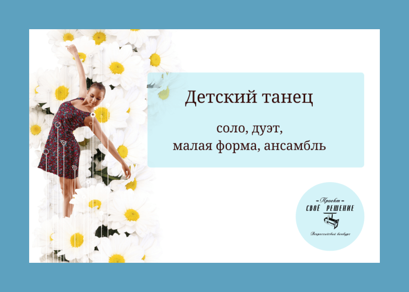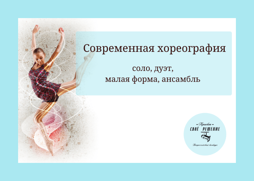 В номинации «Своё решение», представляют одну постановку (продолжительностью от 3 до 30 минут).