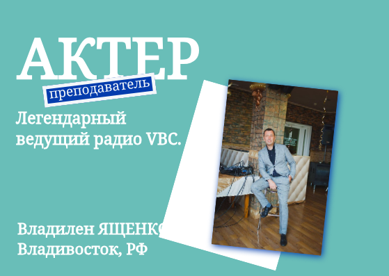 Актер театра драмы и кино; выпускник Екатеринбургского государственного театрального института искусства. Легендарный ведущий радио VBC. Преподаватель актерского мастерства и сценической речи.