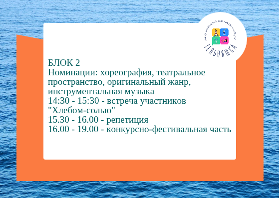 Номинации: детский танец, классический танец, русский танец, патриотический танец, танец народов мира, танец народов СНГ, танцевальное шоу, эстрадный танец, уличный танец, современная хореография, стилизация народного танца, бальный танец.