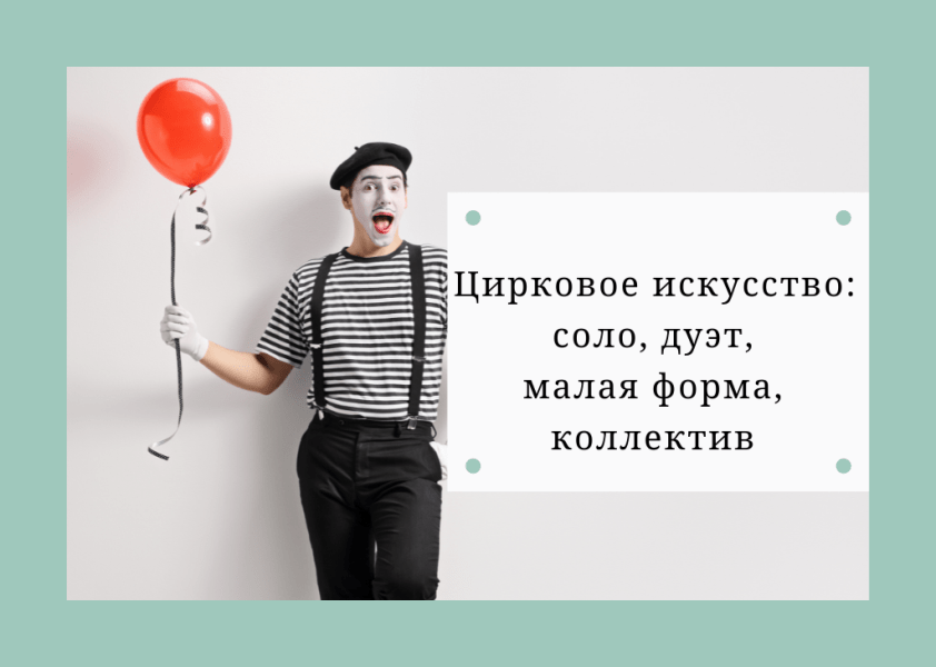 Воздух, Эквилибр, Жонгляж, Акробатика, Клоунада, Дрессура.